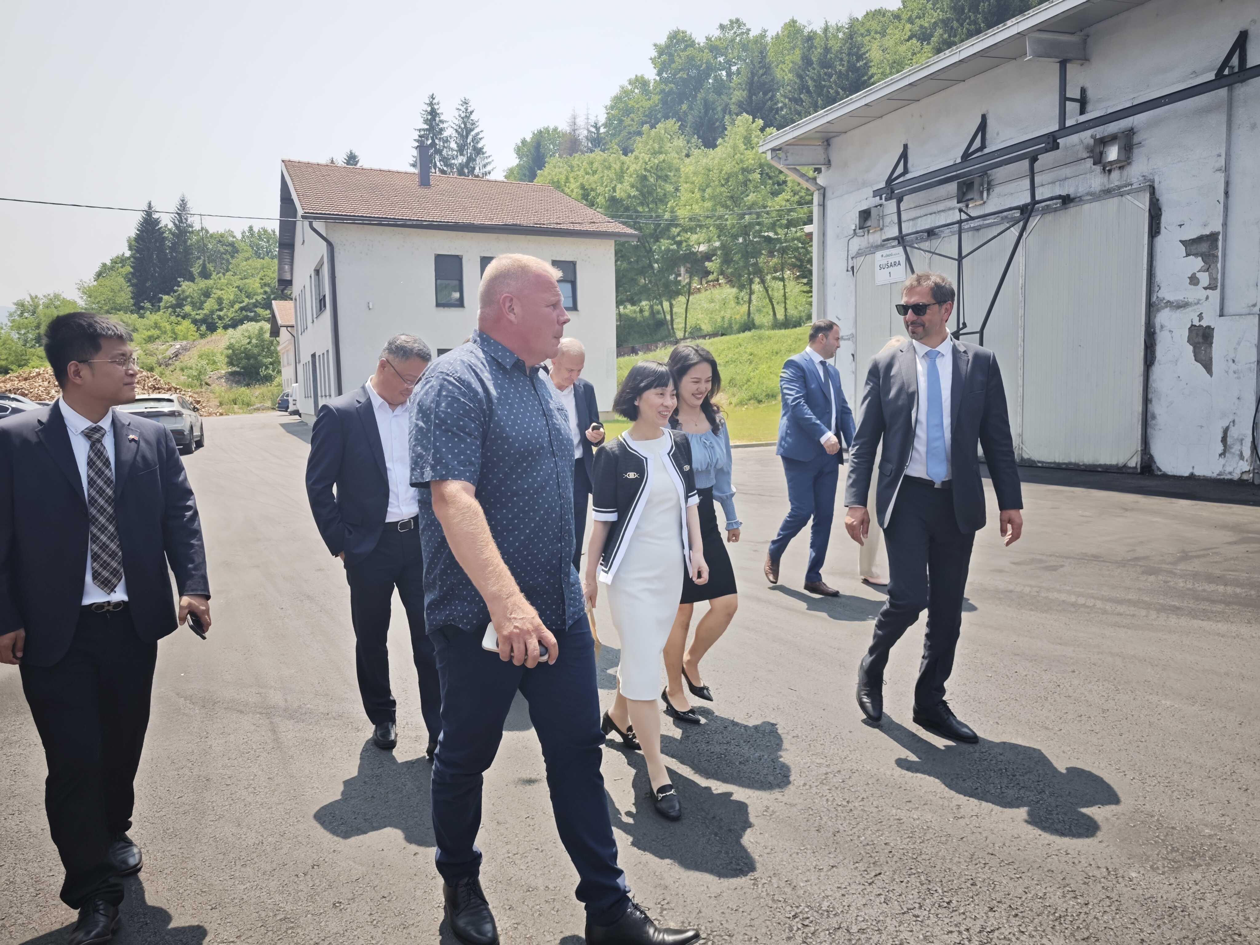 当天上午,李大使一行拜访了布索瓦查市市长梅基奇、市杉蒂奇,走访了当地具有代表性的两家企业——Sakic木材加工场取EZ Group洁净剂及包拆公司。