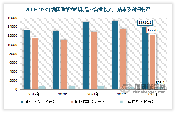 按照不雅研演讲网发布的《中国木材行业成长深度阐发取投资前景预测演讲(2024-2031年)》显示,颠末多年的成长,我国制纸工业逐渐成长强大,纸成品市场已从过去紧缺型变成根基均衡型,且已构成产需根基均衡的款式,大都产物已根基满脚国内市场需求。取此同时,制纸工业也越来沉视质量的提高。现正在正正在不竭调整财产布局,裁减规模小、污染大、能耗高的小型设备,同时积极投入高车速、大幅宽的新型制纸机。低碳、绿色经济曾经成为新的成长从题。虽然2023年因为市场需求削弱、原材料成本上升,以及外部变化等问题叠加,使得制纸行业全体出产和运转坚苦增加。但跟着财产对高质量成长和低碳绿色纸业的认识不竭提拔,通过加强立异能力,添加新动能,合理无效节制新减产能,制纸财产总体仍然连结不变成长态势。数据显示,2023年全国制纸和纸成品业停业收入13926。2亿元,同比下降2。4%;停业成本12228亿元,同比下降3。1%;利润总额508。4亿元,同比增加4。4%。