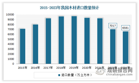 木材是维管构成层向内的成长出动物组织的统称,凡是泛指用于工平易近建建的木制材料。取其他材料比拟,木材具有多孔性、各向同性、湿缩干缩性、燃烧性和生物降解性等奇特征质,被普遍使用于建建、家具、包拆、铁等范畴。木材品品种型很可分为针叶树材和阔叶树材两大类。此中杉木及各类松木、云杉和冷杉等是针叶树材;柞木、水曲柳、喷鼻樟、檫木及各类桦木、和杨木等是阔叶树材。而我国树种良多,因而各地域常用于工程的木材树种亦各别。例如东北地域次要有红松、落叶松(黄花松)、鱼鳞云杉、红皮云杉、水曲柳;长江流域次要有杉木、马尾松;西南、西北地域次要有冷杉、云杉、铁杉。木材对于经济成长、就业和糊口程度提拔具有主要感化。木材行业还具有深挚的文化价值和生态价值。很多陈旧的建建、雕塑、艺术品以及各式保守家具,都是以木材为次要材料制做而成,承载着人类的汗青和文化回忆。同时做为天然生态系统中的主要构成部门,林木的可持续操纵也关乎到生态均衡和。我国丛林资本丰硕。近年颠末持续植树制林、绿化河山,我国丛林面积持续增加,质量不竭提高,成为全球丛林资本增加最快最多的国度。据国度林草局网坐动静,截止到2022年我国丛林面积达2。31亿公顷,丛林笼盖率攀升至24。02%。别的按照国度林草局目前正正在组织编制《科学开展大规模河山绿化三年步履打算》,明白了2023—2025年河山绿化步履的方针使命。按照步履打算,2023—2025年,确保每年河山绿化1亿亩,人工制林不低于2000万亩。正在制林绿化空间适宜性评估的根本上,沉点向一般灌木林地、疏林地、宜林草地和盐碱地、沙地等其他地盘要空间,力争新增制林空间不低于2亿亩。得益于我国丰硕的丛林资本,我国每年木材出产量位居世界前列。2015-2023年我国木材产量全体呈上升趋向。数据显示,2022年我国木材产量为10693万立方米。2023年我国木材产量为11944万立方米。