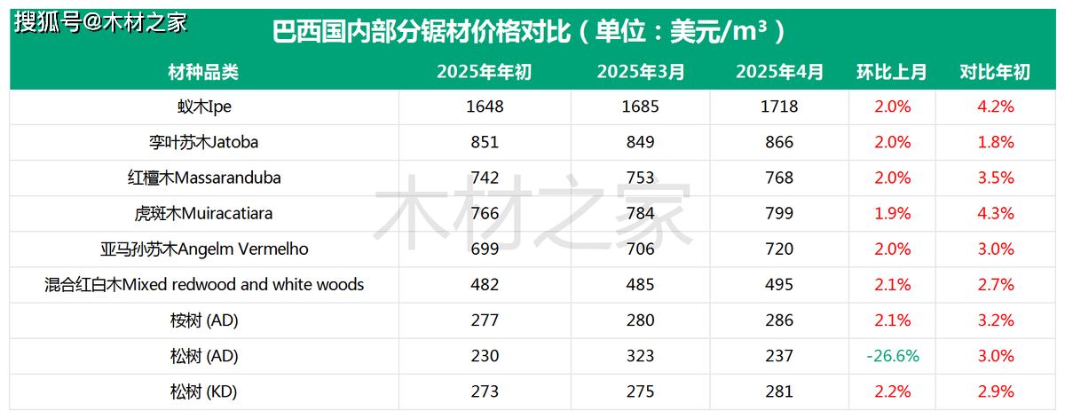 此中,亚马孙苏木、蚁木和孪叶苏木表示最为强劲,对比3月环比涨幅均冲破2%。取岁首年月价钱比拟,亚马孙苏木以6。1%的累计涨幅领先,虎斑木、夹杂红白木紧随其后,别离上涨3。3%和3。4%。值得留意的是,蚁木岁首年月至今虽微跌1。9%,但近期已呈现触底反弹趋向。